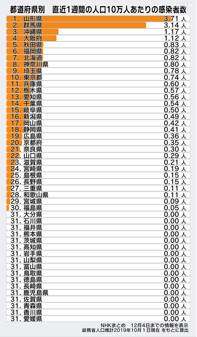 韓国の感染者推移、80% 12月3日は2日間分なので5000人ほど