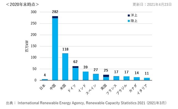 国別の風力累積導入量(百万kW)