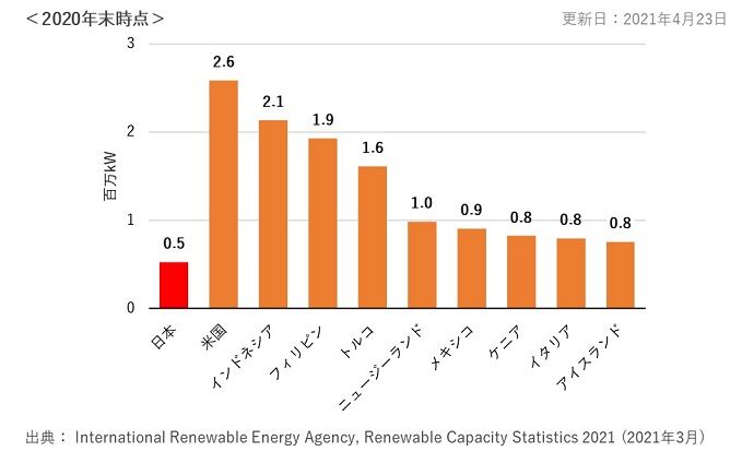 国別の地熱累積導入量(百万kW)