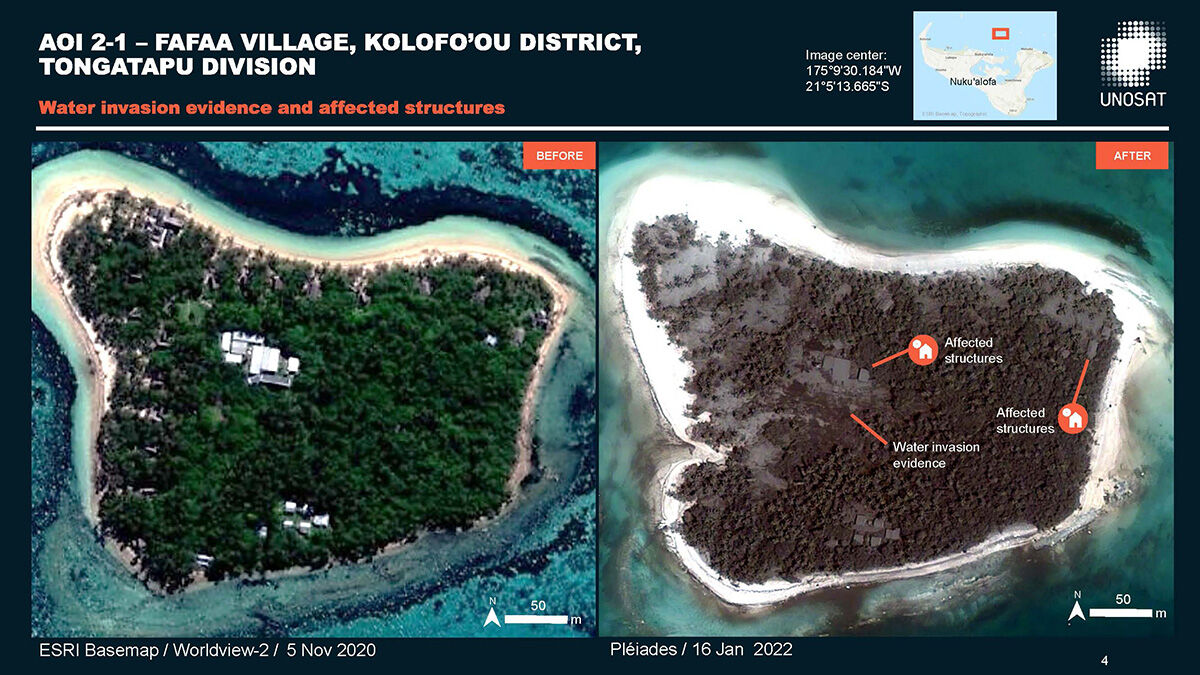 (.@UNOSAT が#HungaTongaHungaHaapai volcano からの影響に関する予備評価を作成: