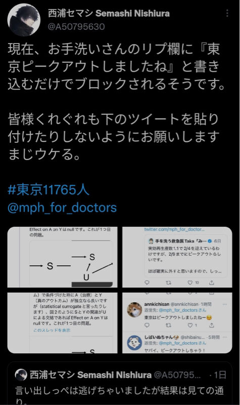 Twitter医師団に「 ピークアウトしたね」と書き込むと