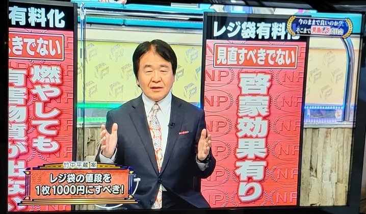 竹中平蔵氏、レジ袋の値段「1枚1000円にすべき!」