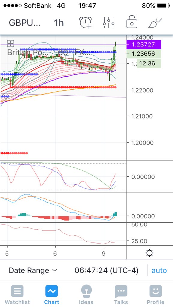 @ryo_faultポンドル1時間足、4時間足1.2364で新規ロング追っかけですが、まだ強そうなので。ドル円を売っているので、ポン円じゃなくてポンドルのロングとしました