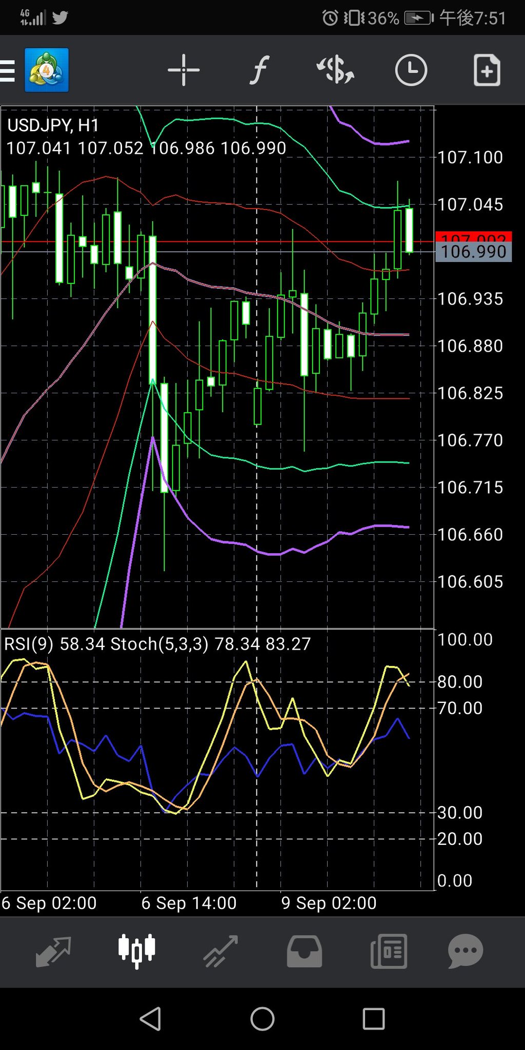 @Sai_Cauchyドル円わたしの天井は107.072もじもじしてるから、1分足を見て107.002で決済ショボかったけど、シグナルツールがあるから勝てる😎