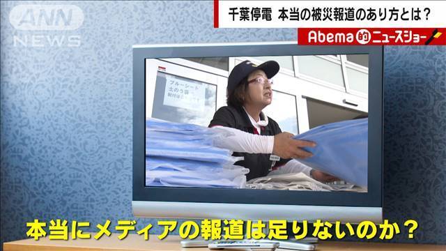 なぜ、千葉の台風被害報道は「足りない」との声が噴出したのか。13日、千葉県出身の三谷紬アナウンサーが現地を取材した。千葉県君津市の郡地区では一部、電気が復旧しているものの、停電している住宅は多く、車の明かりで少し周りが見えるという状況。車中泊をしているご家族がいました。ご近所さんが集まり、情報を共有している人たちもいました。さらに、同じ君津市で…。12日、老人ホームで暮らす82歳の女性が停電によってエアコンが止まった影響で脱水症状と肺塞栓(そくせん)症の疑いで亡くなったことが分かりました。報道は伝える時間ではなく、何を伝えるのか。被災報道の在り方を問うリアルな現実がありました。
