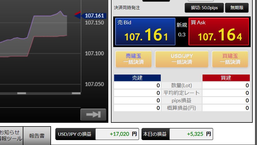 @Dogs0703ということで本日終了。最後のドル円は結局上抜けしましたね。手仕舞って良かった。あやうく眠れない夜になるところでした。利益的には既に週の目標に達しているので、オーバートレードにならないように意識し、また明日から頑張ります。