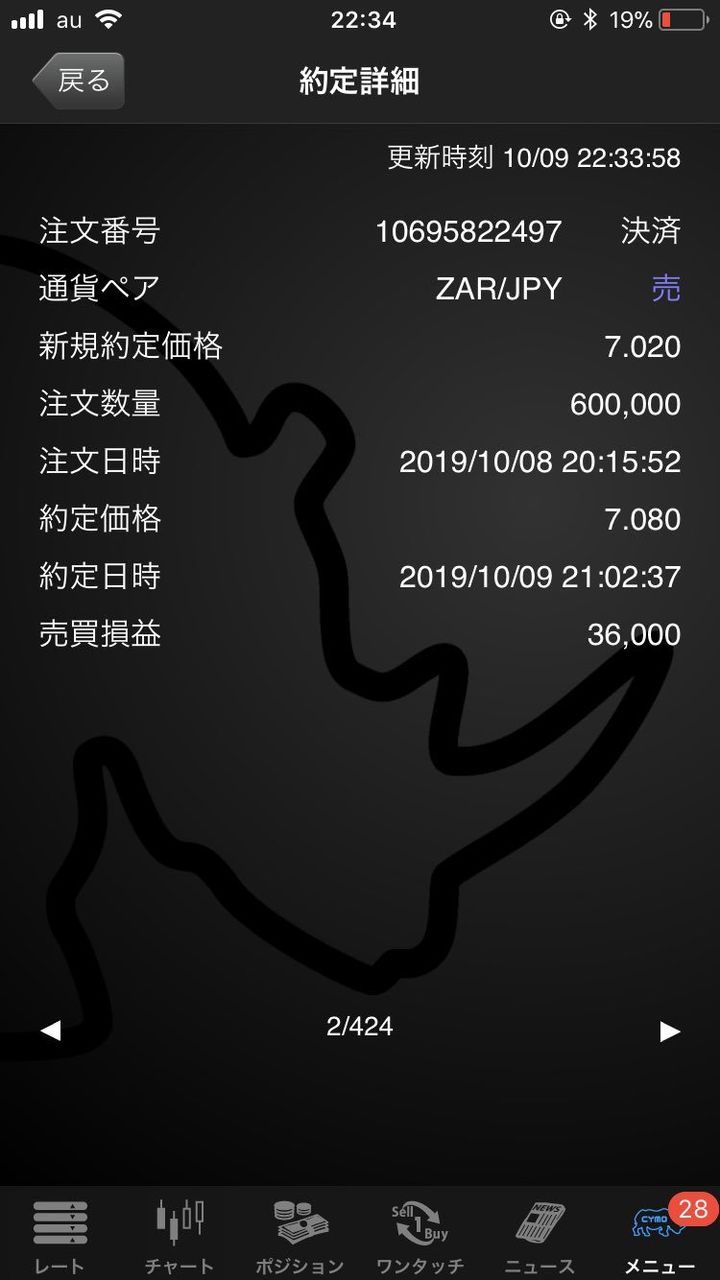 【FX】【de】【LIFE】ランド円の推移予測[20191010]【ZAR/JPY】