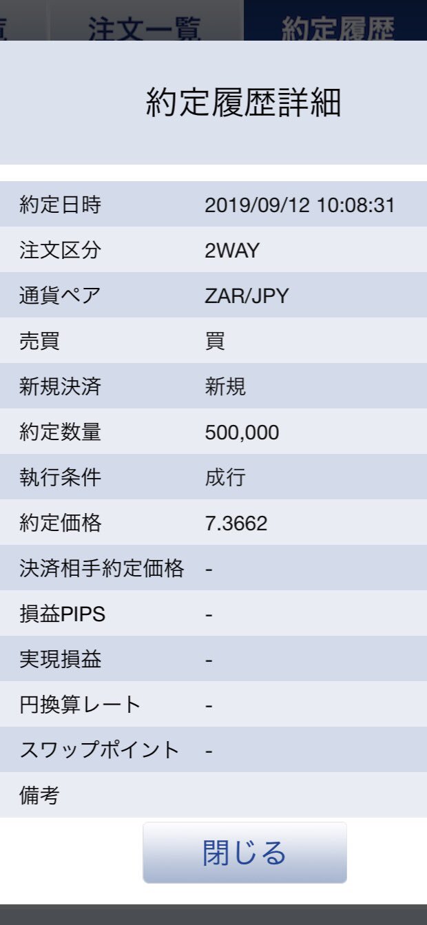 @runharu86南アフリカランド円為替のツイートあんましてなかったど、先々月のパチ稼働から資金を捻出し、コツコツ増やし、9月の頭にナンピンで持ってたこいつ。苦しかったけど、なんとか持ちこたえた。よく我慢しました自分。