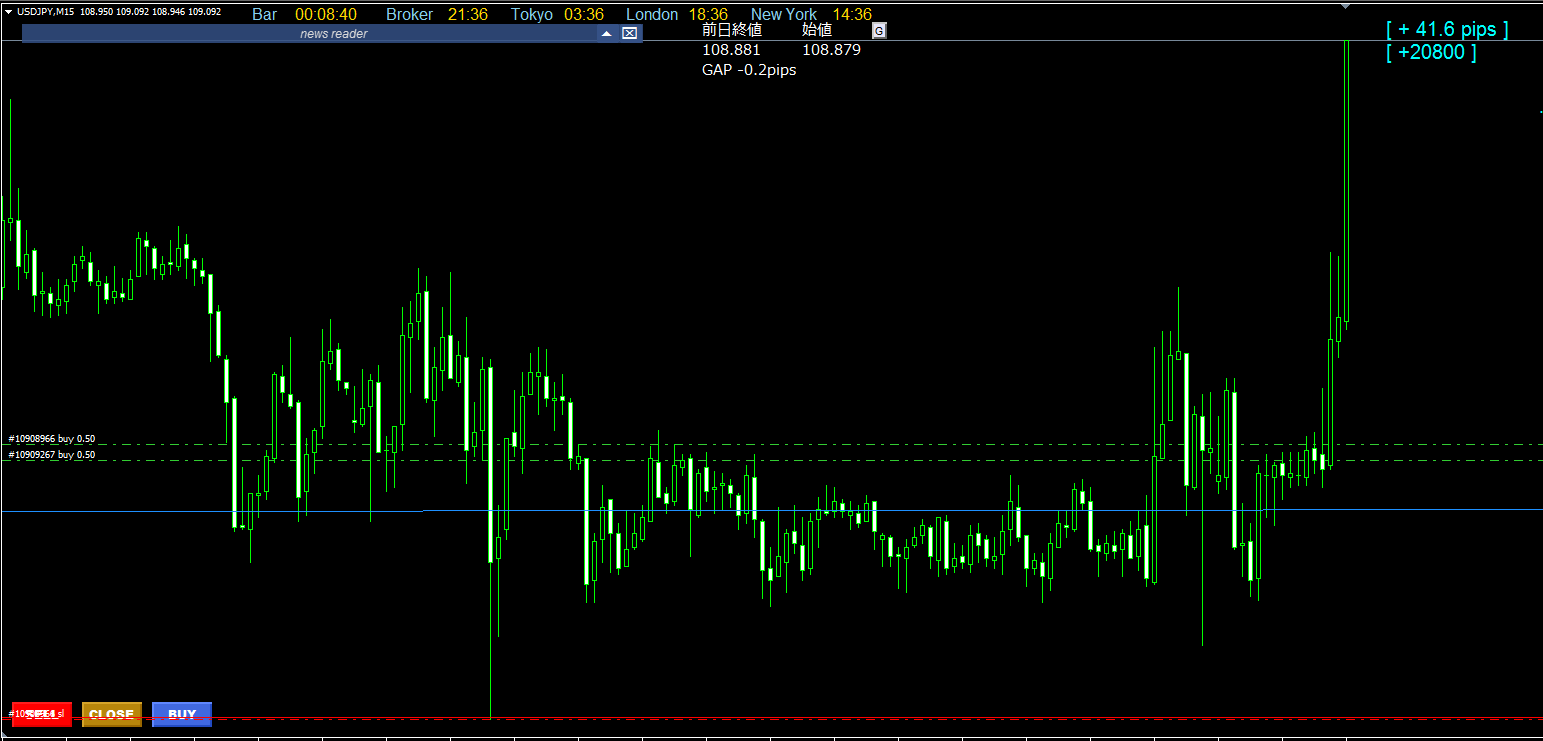 @T49743824発言後はドル高ユーロ安でしたねドル円は109.0を上抜けして大量のストップロス巻き込んでの昇竜拳