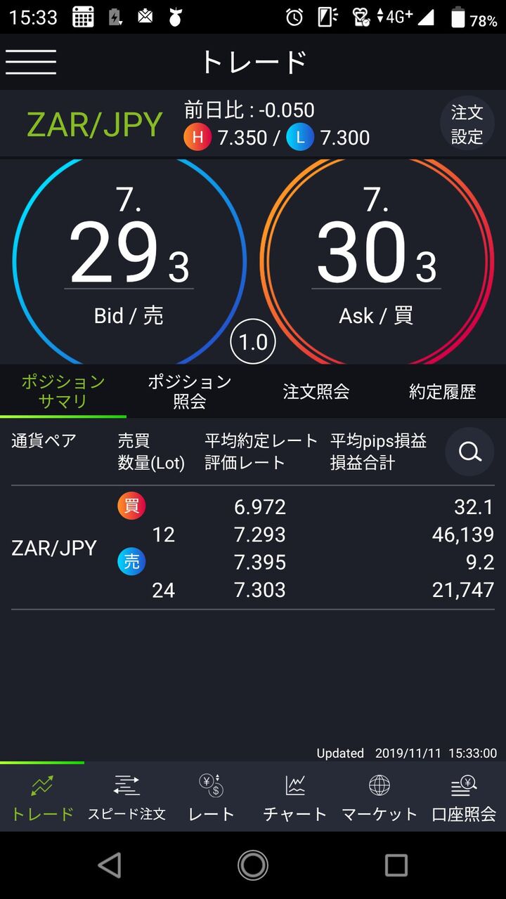 @tFSW6eZT79qQj0lランド円7.367でフライング買い戻ししちゃったんですが、またここから下がるたびに買い戻していきたいと思います👹