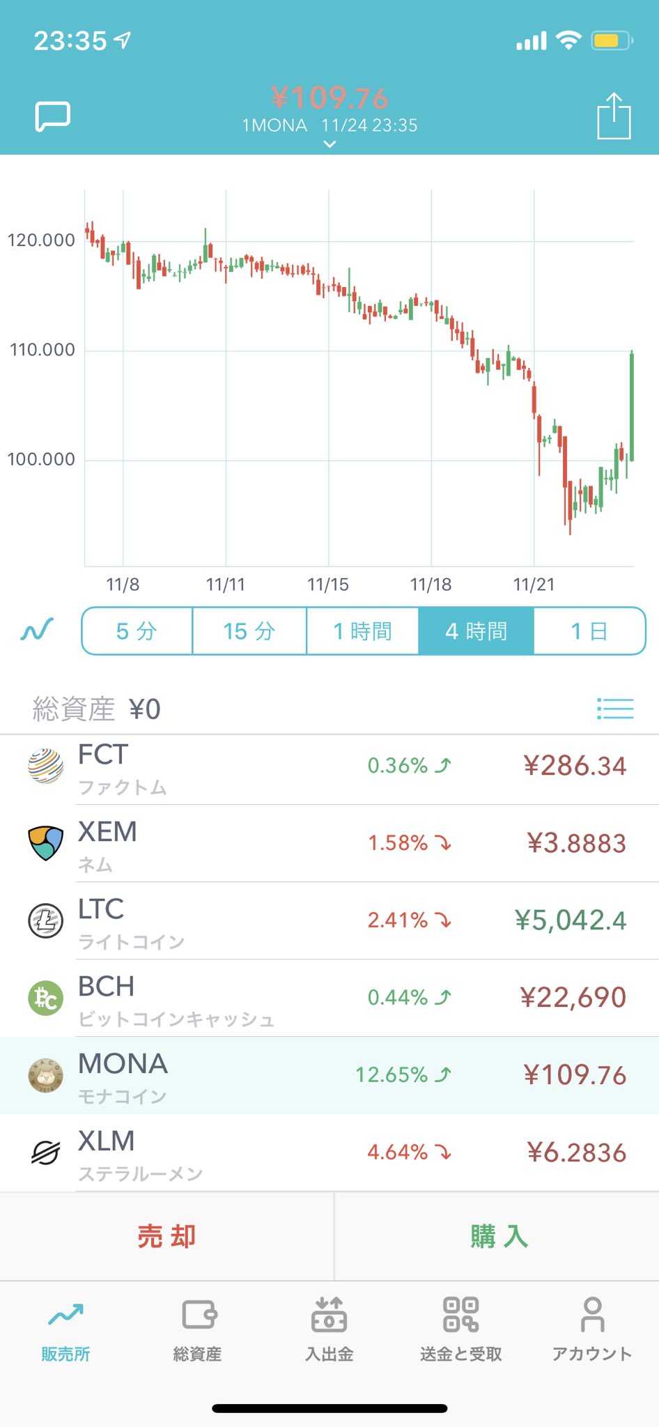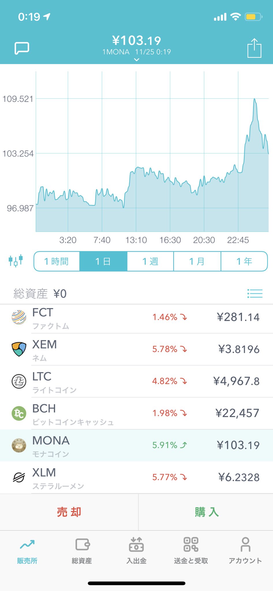 @tabidachinoモナコインとの歴史140円買→130円売130円買→119円売120円買→102円売100円買→95円売111円買→今