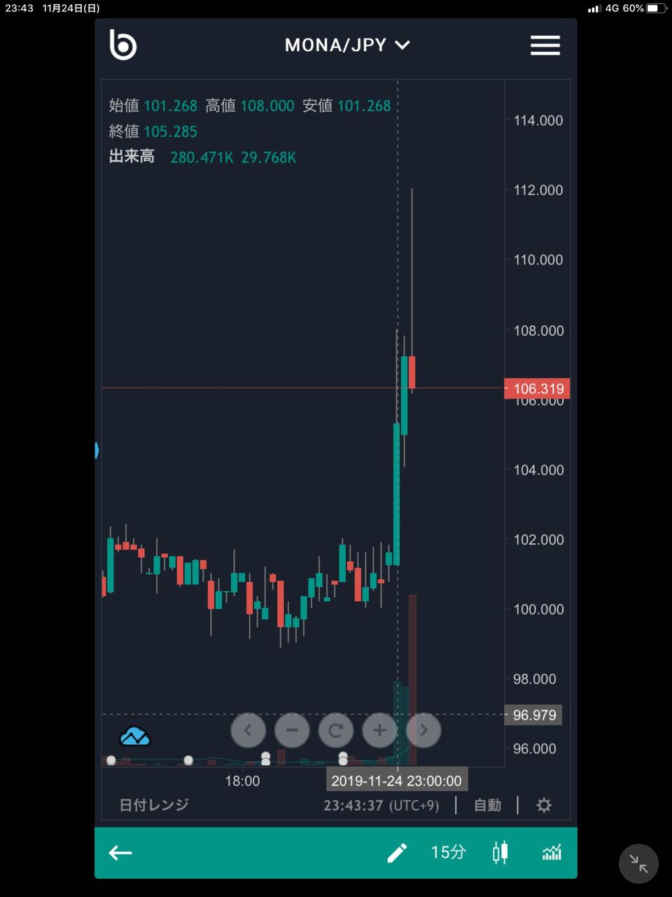 @WSoemENKTQ40K83モナコイン終了利確が早いねーヤッパリモナは折れ線で切り下がりになると終了する事が多い