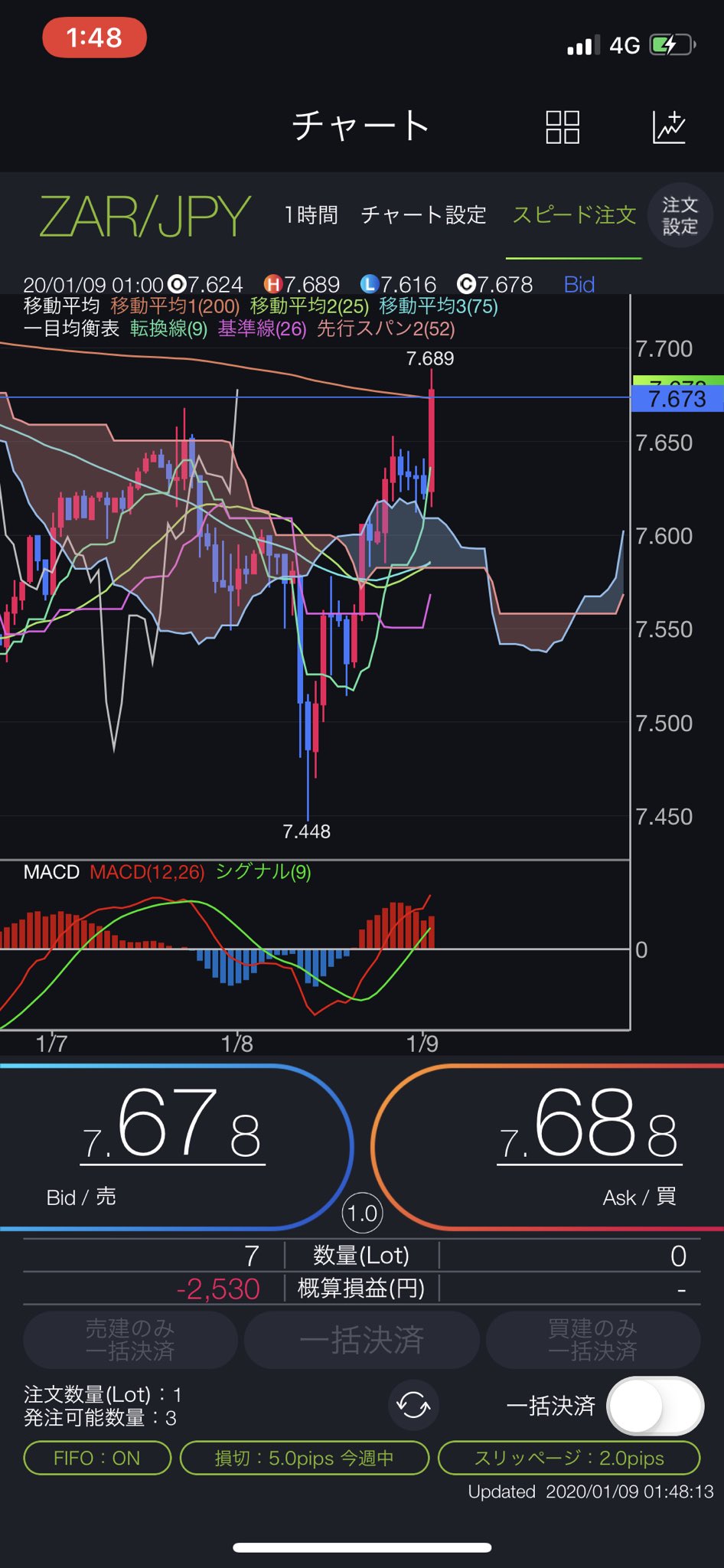 【FX】【de】【LIFE】ランド円の推移予測[20200109]【ZAR/JPY】