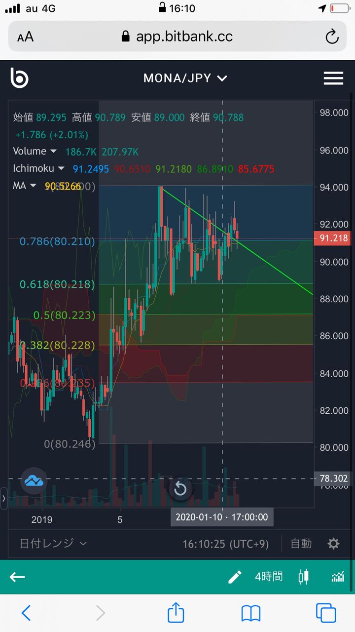 @yotuba_cryptoモナコイン 4時間足サポートライン効いて上昇するかな?5時まで静観。