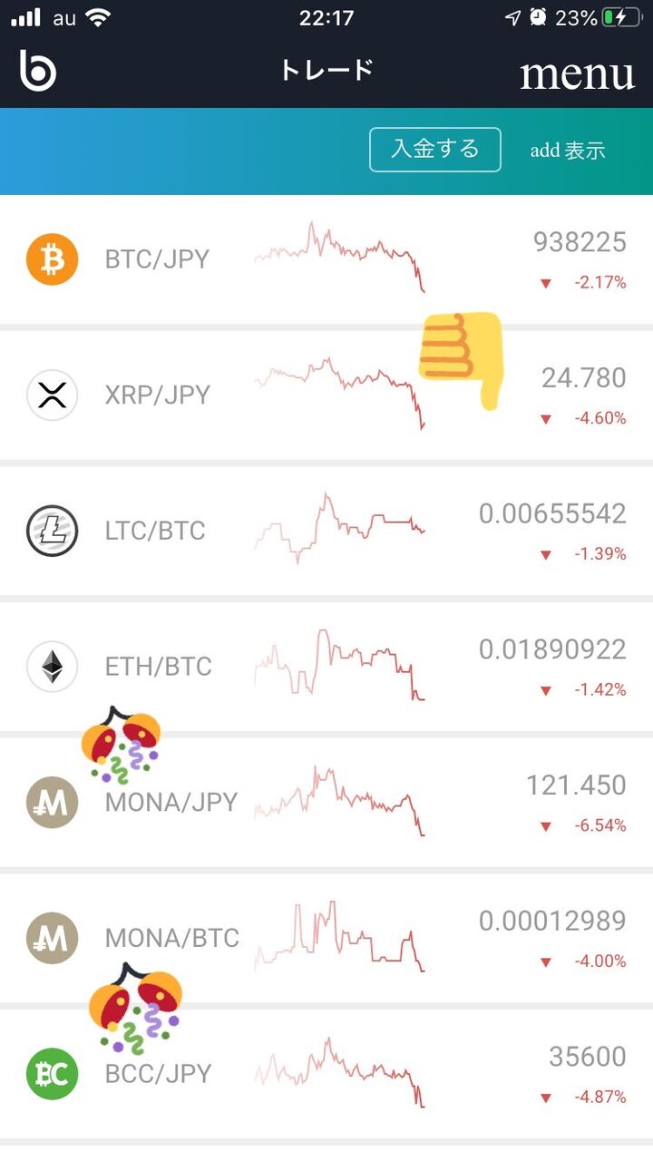 @ken46abeshi今は絶好の押し目...のはず‼️リップル以外。買うぞ、買うぞ!ビットコインキャッシュモナコイン #BCC #BCH#MONA #BTC