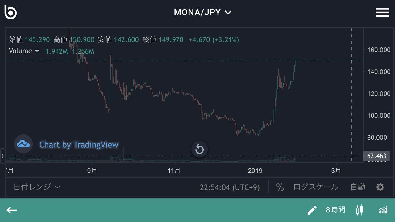 @muimui1224モナコインDMM上場は2月19日みたいですね!数日前からジリジリと値を上げてるので、このまま19日までに200円くらいいってくれたら理想的ですがどうなんでしょう。ただレバ取引なので4桁ホルダーとしては売るタイミングが難しいのも事… https://t.co/Ffb60c61UF