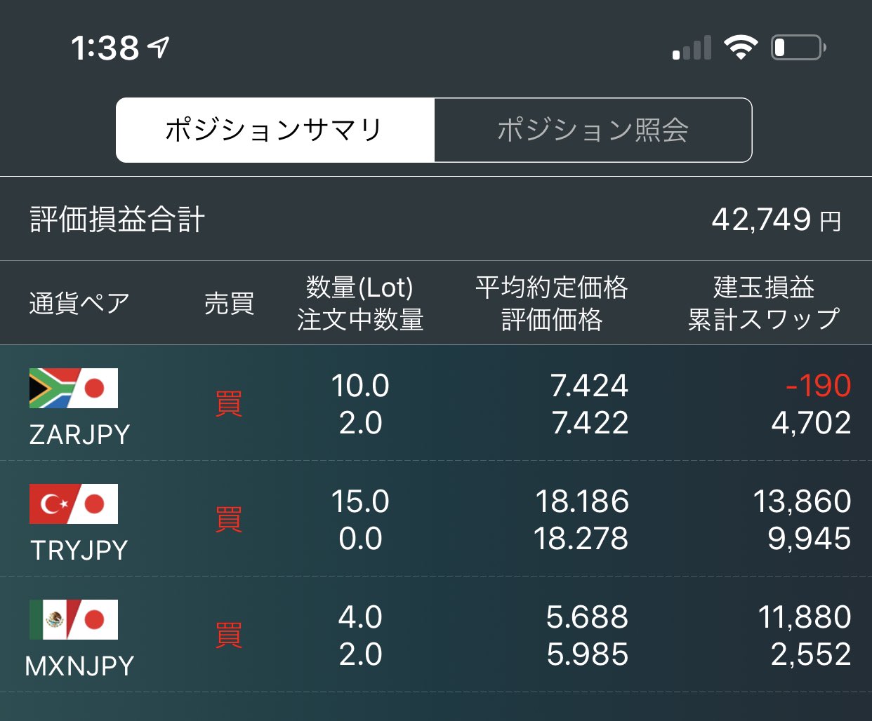 @Money_Lab_FX進捗!反動の円安で建玉損益が戻ってます!このままトルコリラが改善するようなら、少し売って、ランドかメキシコペソを追加で買うかもです。