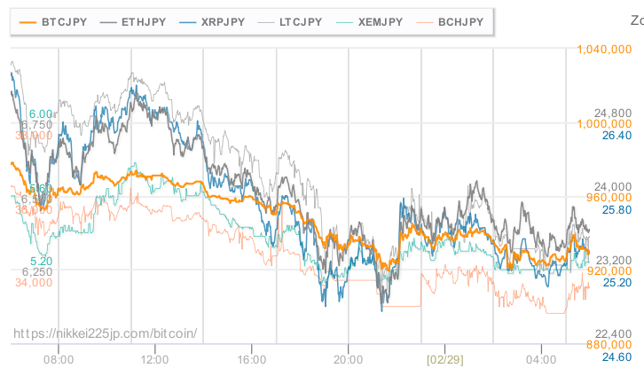 @yutamaruy2020/02/29 06:00:08[ bitFlyer ] ビットコイン[BTC/JPY]:928,994円イーサリアム[ETH/JPY]:23,922円[ Zaif ] ネム[XEM/JPY]: 5.2371円… https://t.co/RLEFFXQqsq