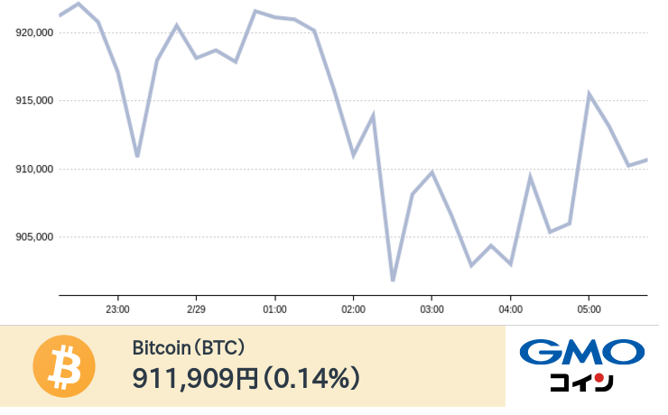 @gmo_coin現在のビットコインの価格は911,909円です。(前日比0.14%)ログイン・新規口座開設はこちらhttps://t.co/6zp1eG89pz