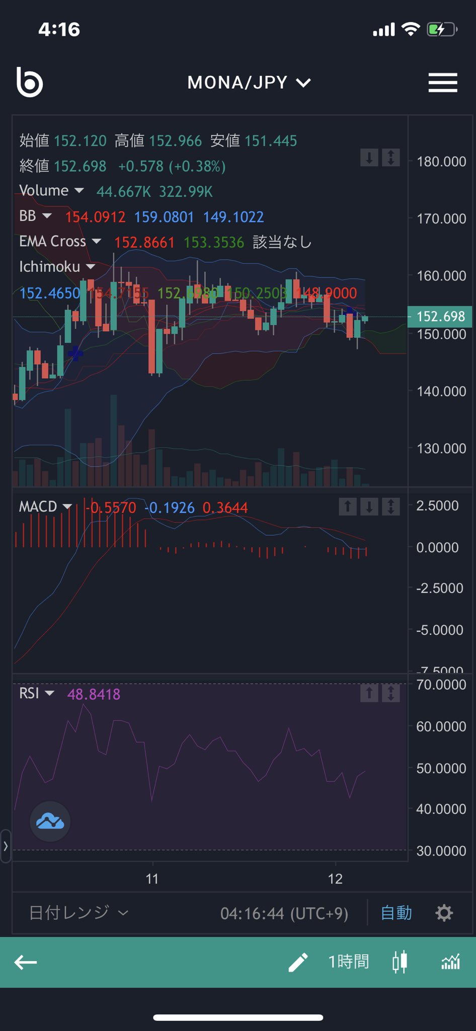 @miku_cryptoモナコイン このラインが有効かもね。へたに取ってしまったから寝れないやんwてか、コレ明日爆上げある感じに思えないんだけどー