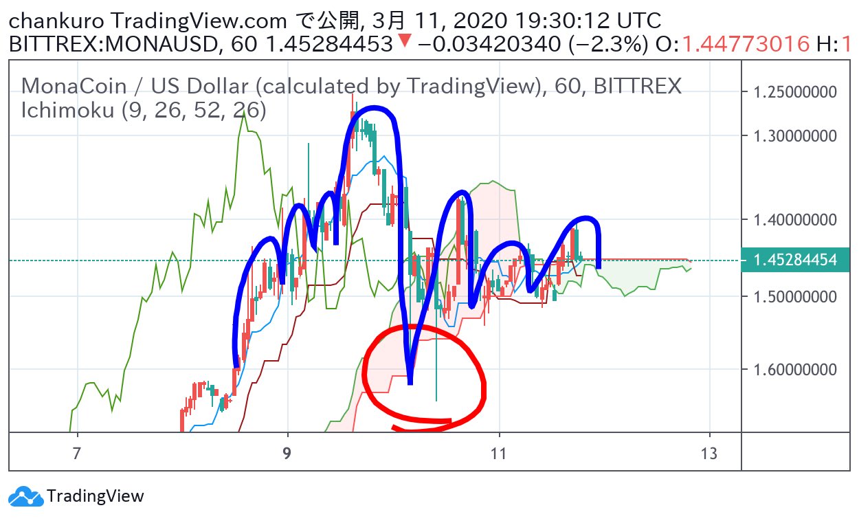 @chan_96nem1時間足反転チャートと通常チャート反転チャートはボチボチ空売りポジション通常チャートは切り上げトリプルボトムモナコイン頑張れ💪