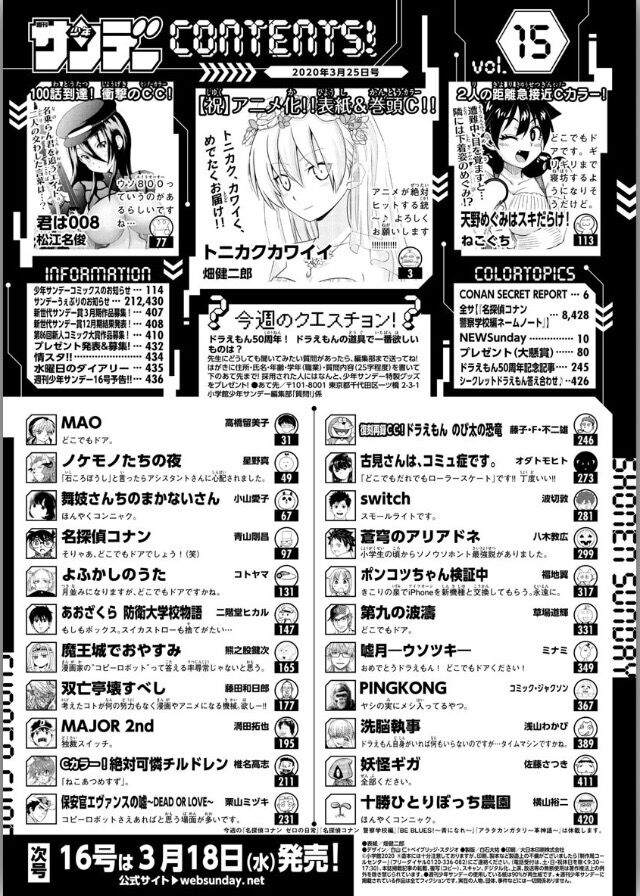 ドラえもんってサンデーやったねんね( ´ー`)y-~~