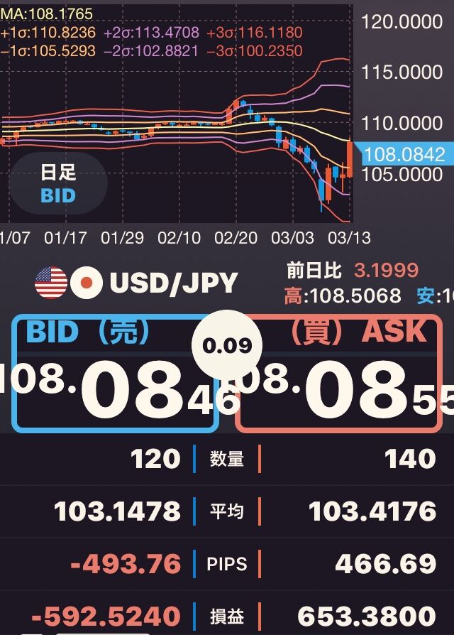 【FX】【de】【LIFE】ドル円の推移予測[20200316]【USD/JPY】