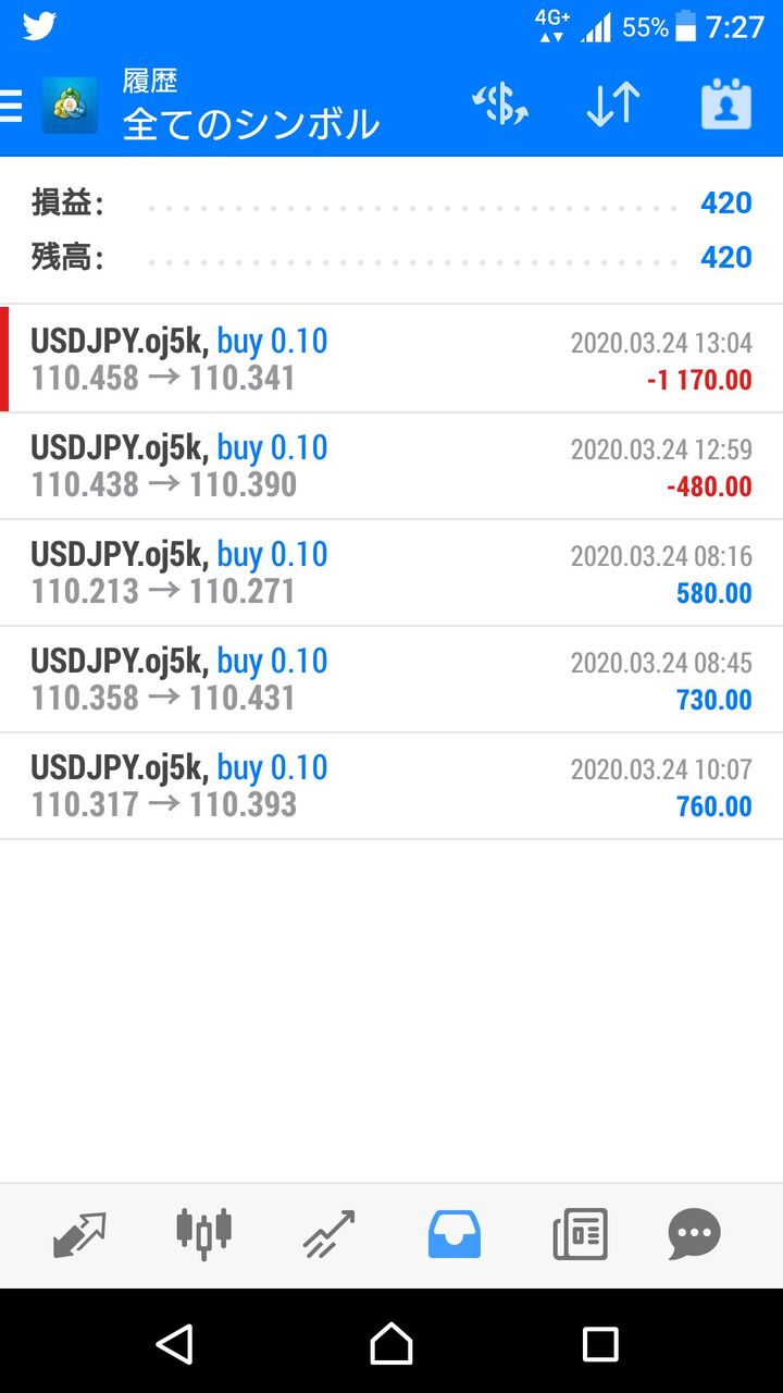 @GM1eJmWgmLkKkLl3/24(火)結果+420円ドル円L後、ホールドできずにすぐチキン利確しちゃう😧