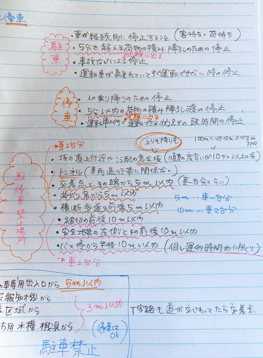 私は学科試験絶対落ちたくないからワークシート埋めながら先生が説明したこと全部ノートに書いてる!!!(必死で殴り書きしてるから字が汚い)