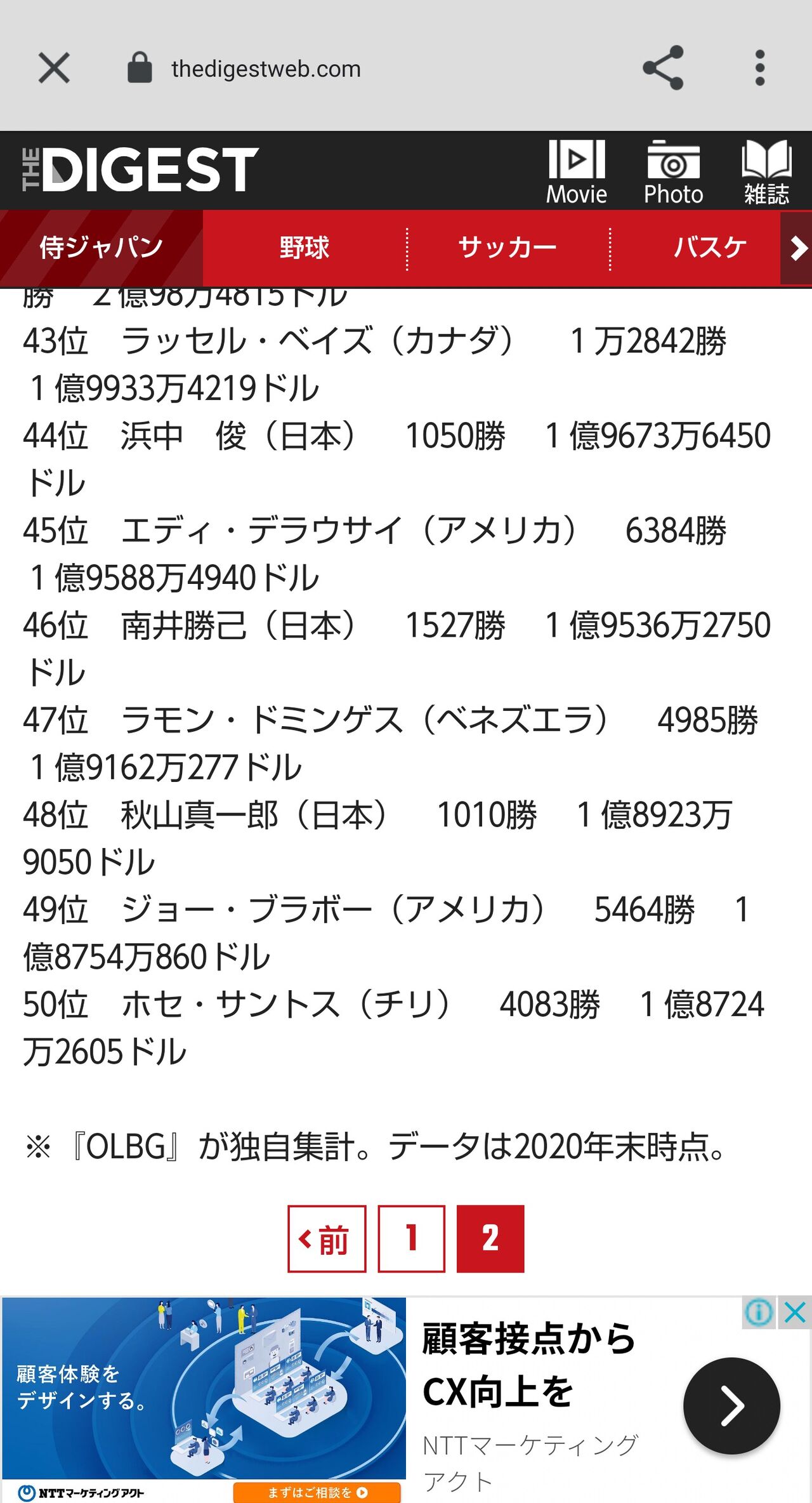 25位 河内 洋(日本) 2111勝 2億5627万8650ドル