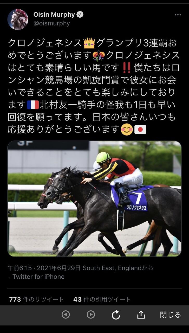 マーフィーってドバイのときラヴズでクロノにタックルしてきた騎手か